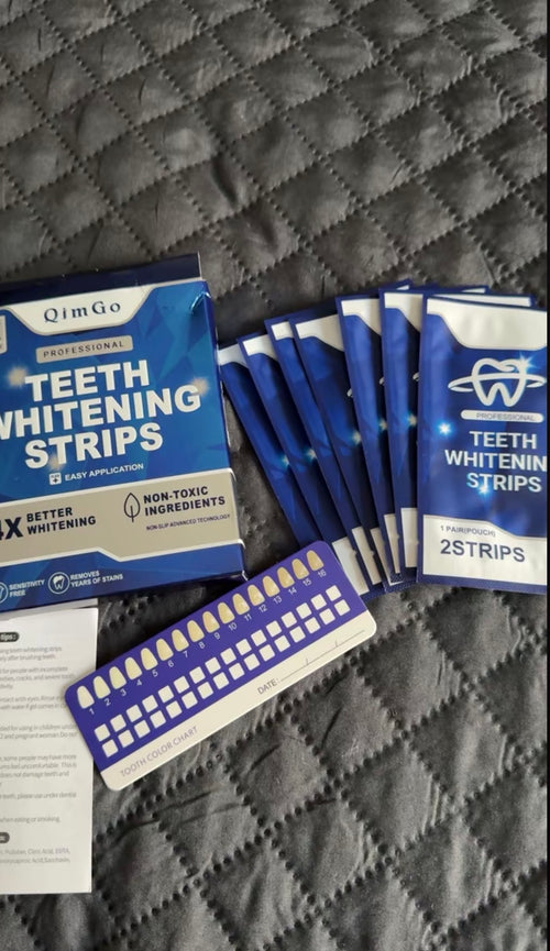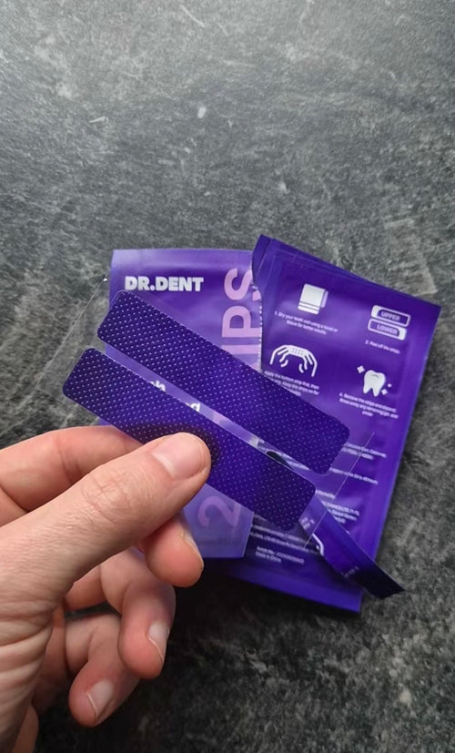 Violette Zahnaufhellungsstreifen helfen, Vergilbungen zu neutralisieren und die natürliche Zahnfarbe wiederherzustellen, und schonen dabei empfindliche Zähne .