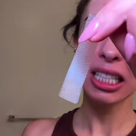 Violette Zahnaufhellungsstreifen helfen, Vergilbungen zu neutralisieren und die natürliche Zahnfarbe wiederherzustellen, und schonen dabei empfindliche Zähne .